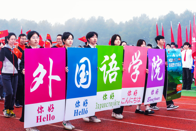 秋光潋滟,礼赞拼搏身影;喝彩震天,凝聚集体荣光。10月31日上午8时,伴随着激昂的旋律,各院学子组成的方阵踏着整齐的步伐迎面走来。朝气蓬勃的外院学子身着统一服装,面带笑容,喊着嘹亮的口号“中国灵魂,世界胸怀,眼望星辰与大海。博采众长,外院启航,运动赛场展锋芒。”步伐坚定、气势如虹。外院学子手握嫣红的油纸伞,托举成五星红旗的形状,展现了浓厚的爱国情怀。在开幕式表演中,外院学子身着整齐服装,以一场行云流水的八段锦表演惊艳全场,将传统养生文化与青春活力巧妙融合,展现出外院学子对中华优秀传统文化的传承与创新。
