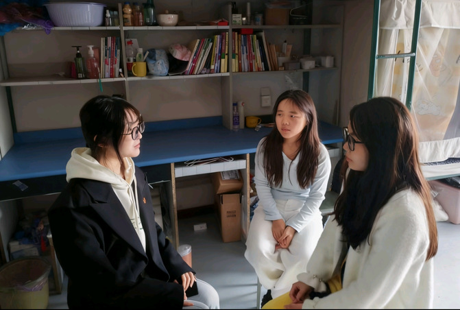 为充分发挥学生党员的先锋模范作用,切实解决英语专业新生在专业认知、发展规划等方面的困惑,2025 年 11 月 1 日,外国语学院学生党支部职业发展帮扶小组在学生宿舍开展专项帮扶活动。活动由帮扶小组组长学生党员葛涛牵头,党员桂鑫锐、李欣共同参与,面向 25 级英语专业新生,围绕专业发展路径、职业规划、技能储备等核心需求提供精准指导。