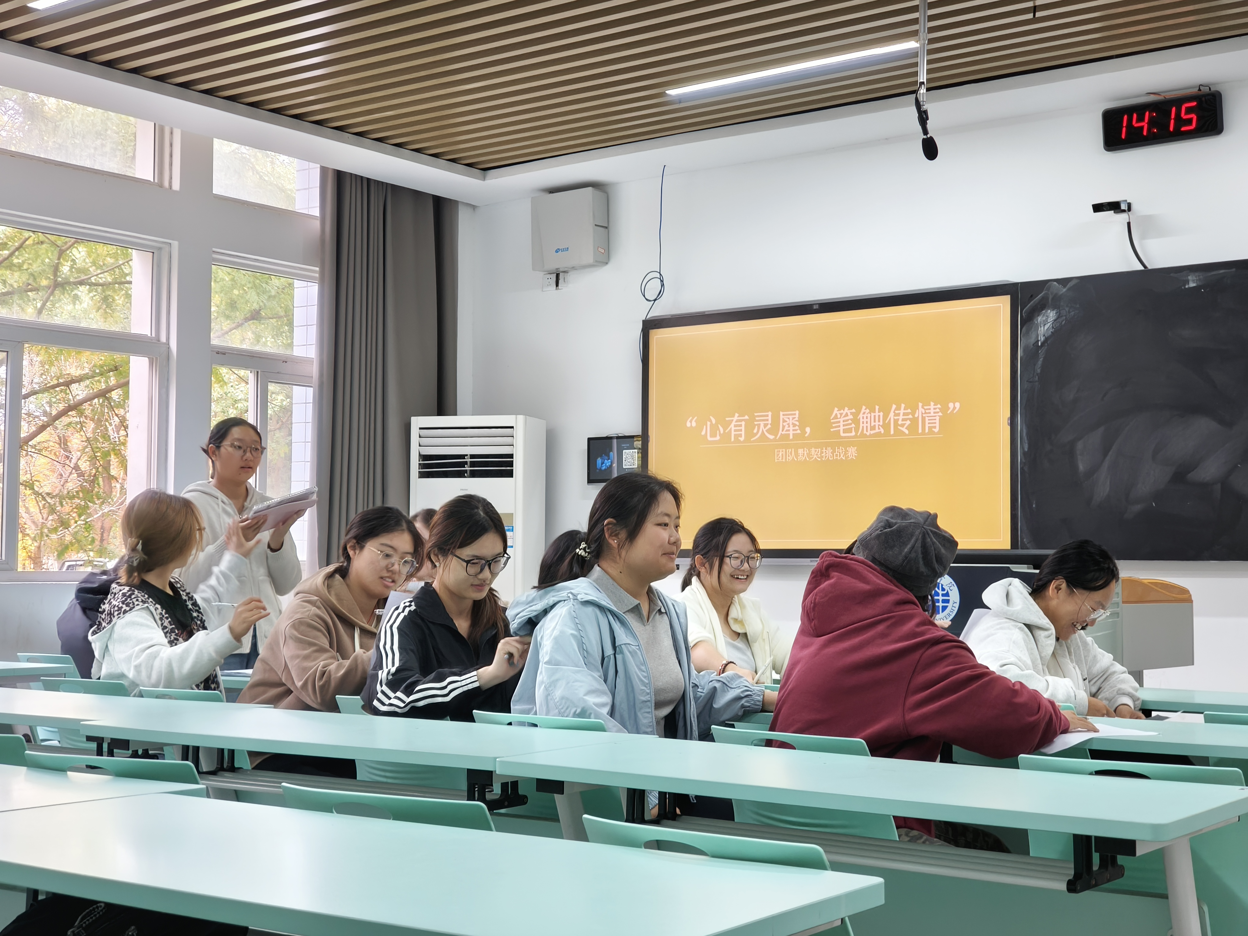 为提升团队成员间的信任感、非语言沟通能力与默契配合,11月16日下午2点,外国语学院在教学楼B楼128教室开展了“心有灵犀,笔触传情”团队默契心理活动挑战赛。本次活动面向外国语学院全体同学,以“信任为笔,默契成画”为主题,通过独特的“盲画”形式,为同学们打造了一场趣味与成长兼具的团队协作盛宴。
