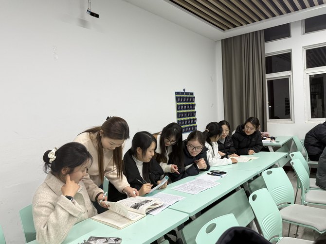 为深入学习贯彻习近平新时代中国特色社会主义思想,充分发挥学生党员在学风建设中的示范引领作用,近日,外国语学院学生党员邵娟、杨子薫、李悦悦在教学楼B123教室面向25级新生李笑笑、王莹等六人开展“四六级翻译专项帮扶”活动,通过“真题拆解+技巧输出+实战演练”的三维模式,帮助学妹们打通翻译堵点,夯实四六级冲刺“最后一公里”。