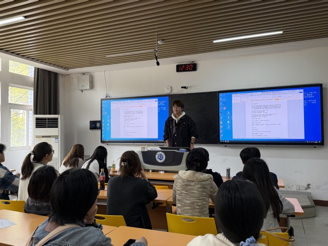 本次会议以“科学分工、责任到人、高效推进”为核心原则,由话剧社负责人余磊全程策划并主持讲解,分为筹备进展总结、核心剧目角色分配、配套工作任务部署三个环节。活动伊始,余磊说明了本次年度展演的整体方案、主题定位及核心时间节点,强调了筹备工作的紧迫性与重要性。随后,余磊重点介绍了本次展演将推出的三部红色主题英语话剧 ——《为中华之崛起而读书》、《大山里的读书声》、《两弹一星,永垂不朽》,详细讲解了每部剧的剧情脉络、人物形象与表演要求,并组织现场成员进行角色试演与分配。成员们踊跃参与,结合自身英语发音特点、舞台表现力与角色契合度积极展示,经过公平公正的选拔与协调,最终确定了三部话剧的全部演员阵容。在此基础上,余磊围绕剧本打磨、排演统筹、道具制作、舞台设计、宣传推广、后勤保障、嘉宾邀请七大配套模块,逐一拆解具体工作任务,明确了每项任务的完成标准、时间要求与对接流程,全体成员结合自身特长主动认领岗位,现场氛围热烈而有序。